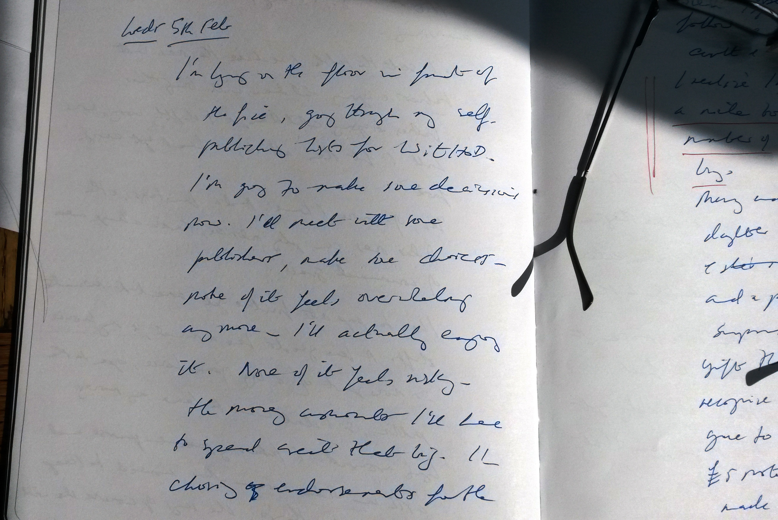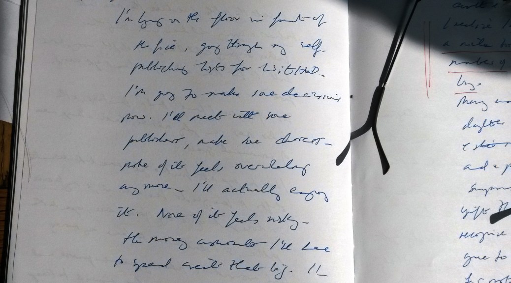 I’m lying on the floor in front of the fire, going through my self-publishing lists for Writing in the House of Dreams. I’m going to make some decisions now… None of it feels overwhelming any more…. None of it feels risky. The actual amounts I’ll have to spend are not that big…